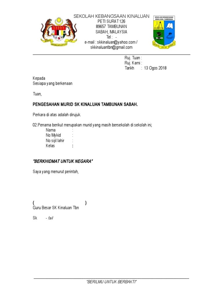 Contoh surat pengesahan murid sekolah kebangsaan.